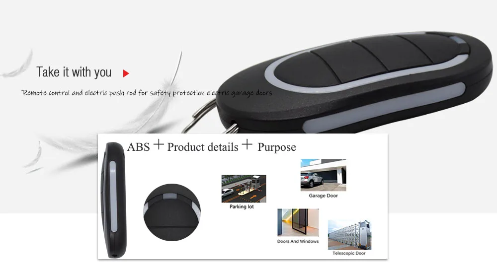 Ambito di applicazione: porta del garage, allarme, porta automatica, porta scorrevole, ecc. Include 1* Telecomando 1* Batteria 1* Portachiavi 1* Manuale inglese