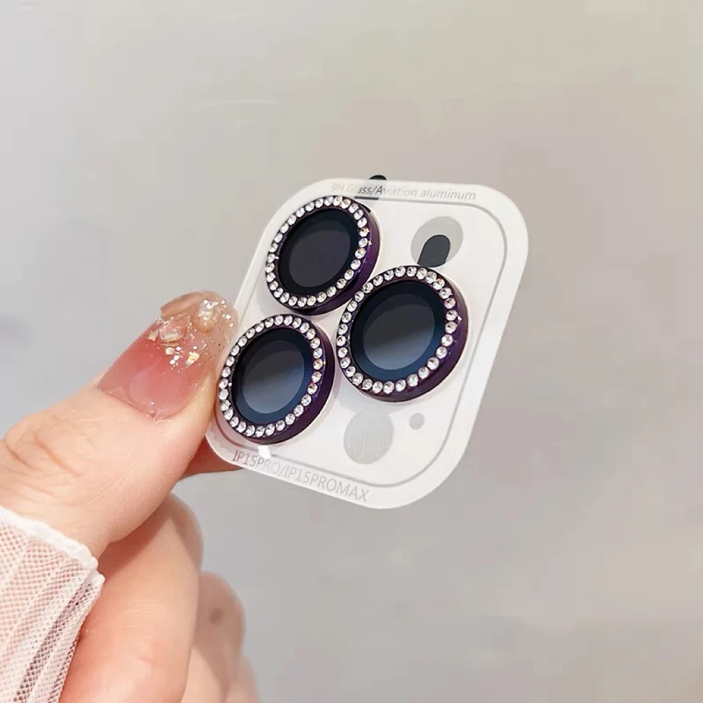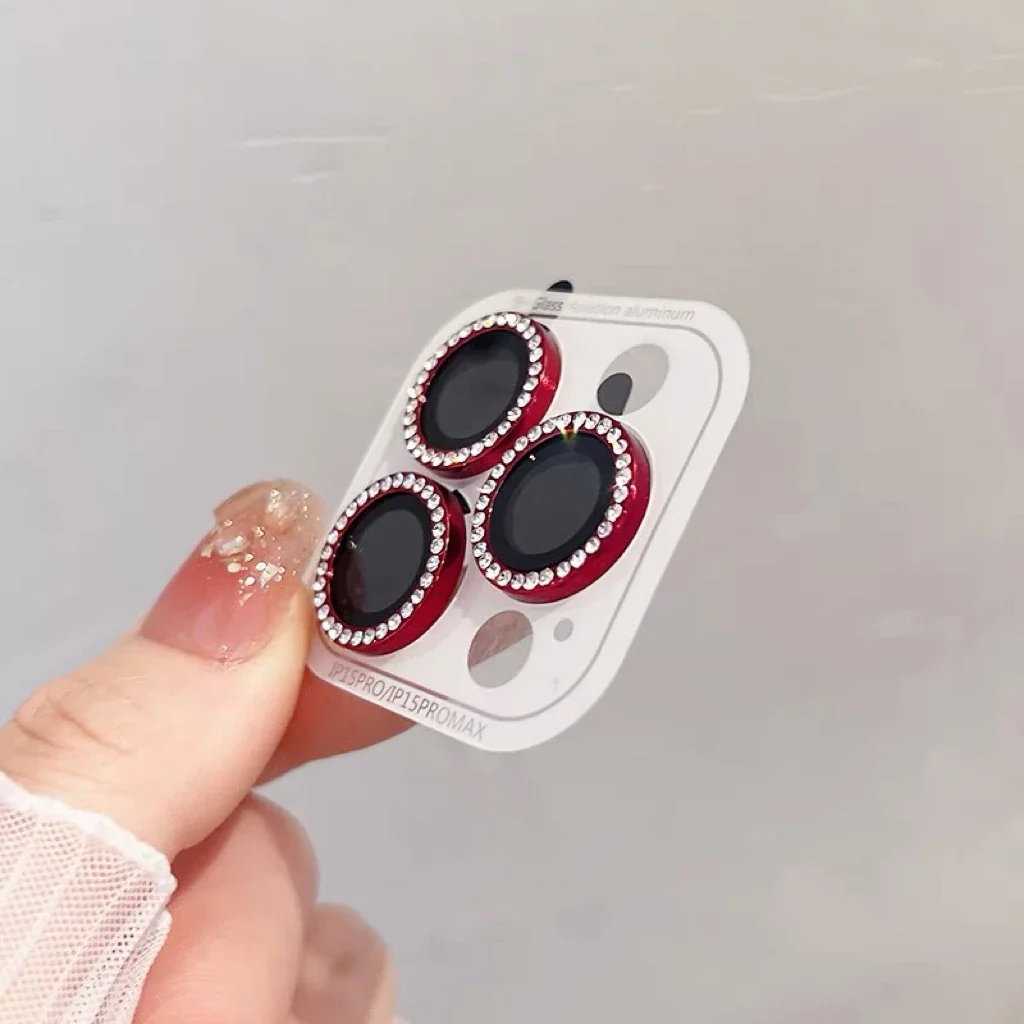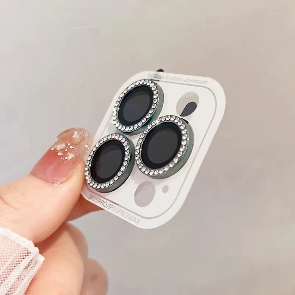 3-2 Pcs Luxury Diamond Camera Lens Protector for iPhone 17 16 15 14 13 Pro Max Plus Glitter Ring Back Glass Lens Cover Glossy