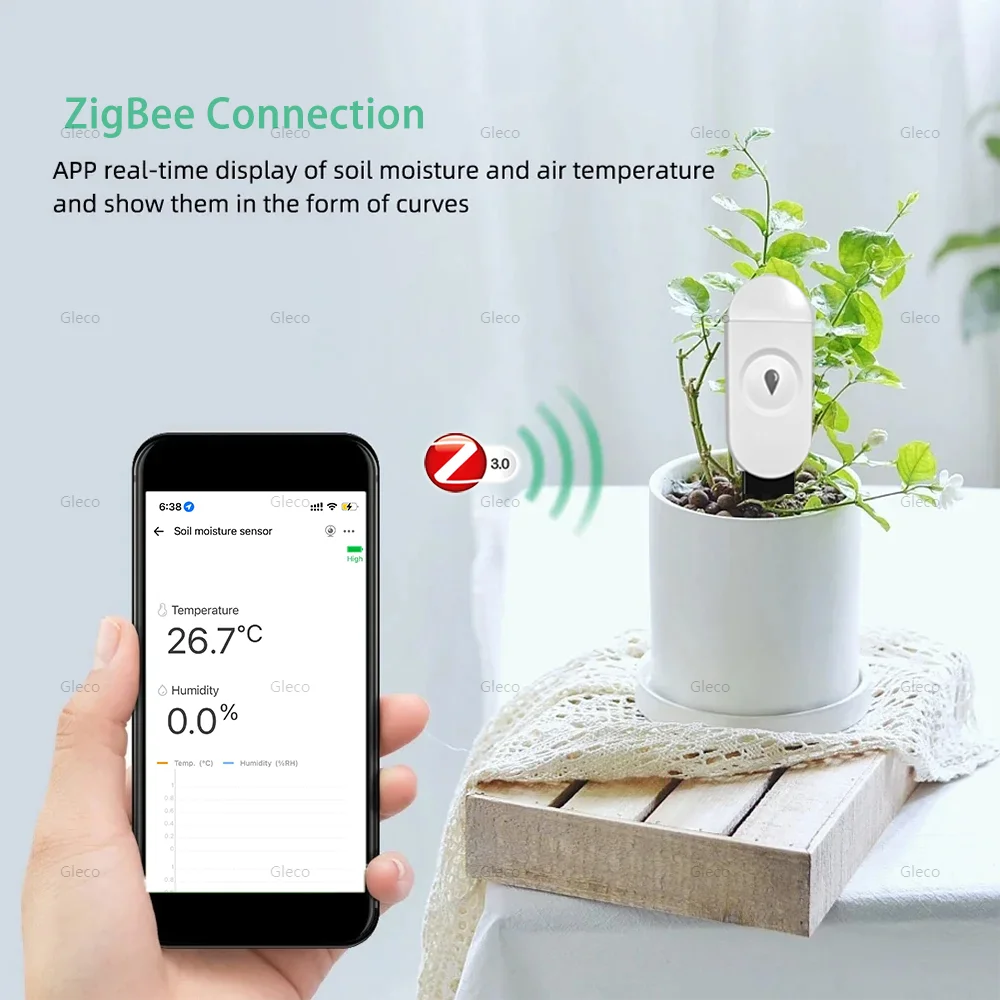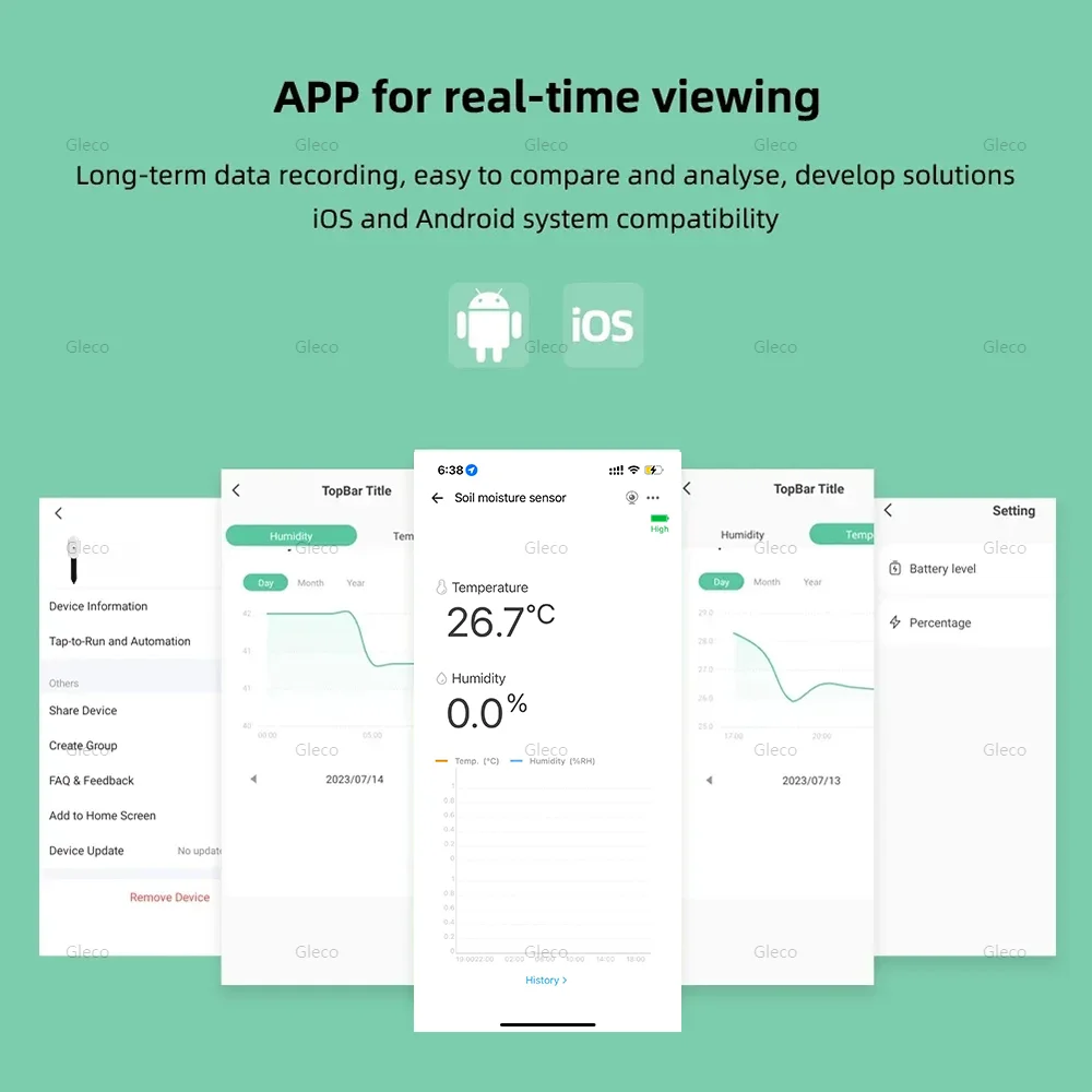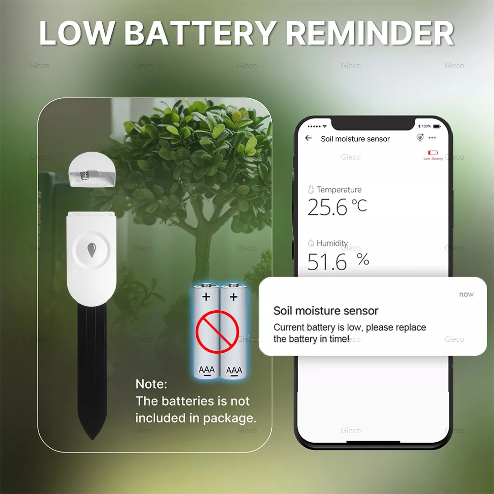 【Emergency Alert Push Function】The mobile APP displays the soil temperature and humidity in the detection, it will send alert notifications directly to your phone. This way you can stay informed about what's happening with your plant, even when you're not there.