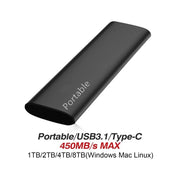 Disco rigido esterno da 1 TB Disco rigido ad alta velocità da 2 TB USB3.1 Tipo-C Dischi di archiviazione per unità a stato solido per laptop/desktop/Mac/telefono