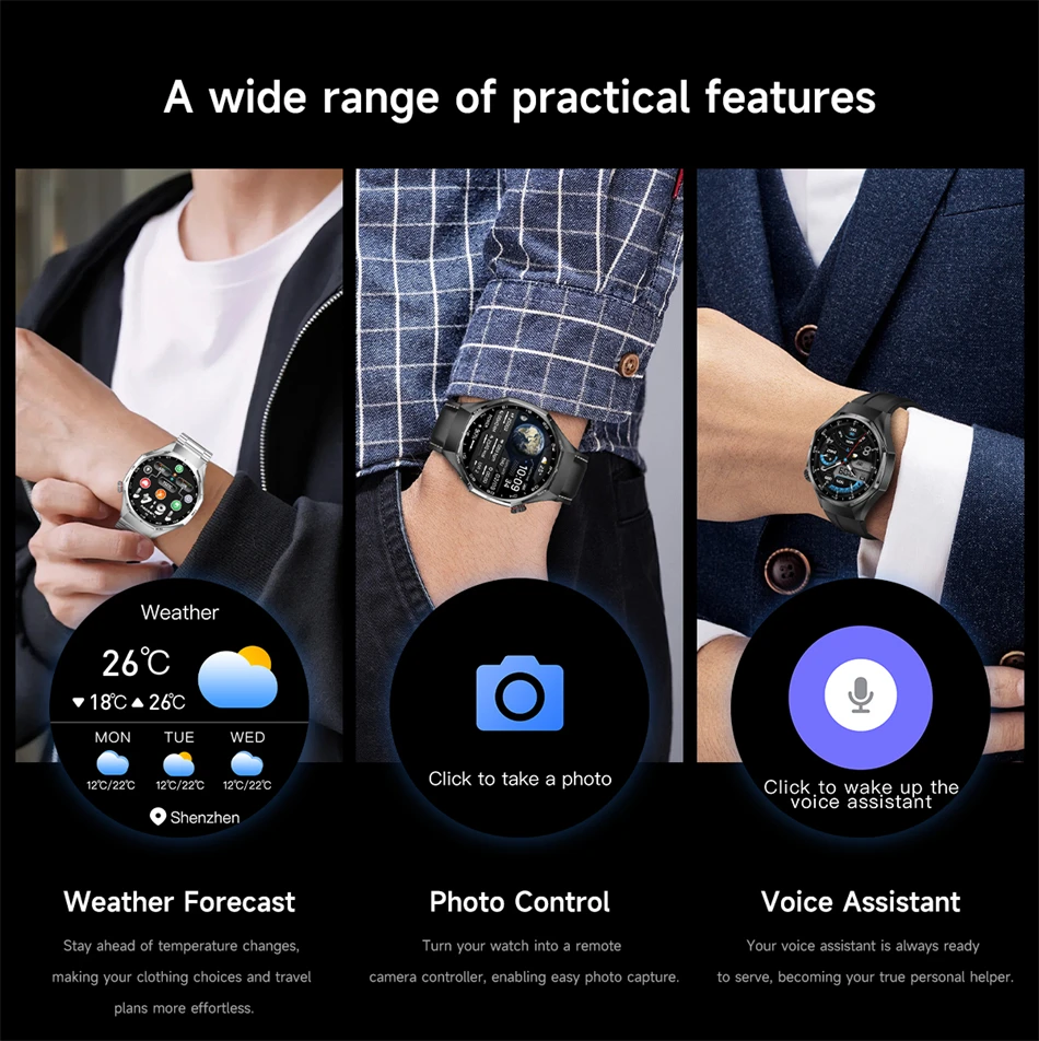 Funzione orologio: telefono GPS G-Sensor (contatti, cronologia chiamate, tastiera di composizione, impostazioni chiamate, SOS), push messaggi, esercizio fisico, conteggio passi, rilevamento del sonno, musica, frequenza cardiaca, ossigeno nel sangue, rilevamento della salute delle donne, promemoria farmaci, bevanda promemoria acqua, promemoria sedentario, interruttore stile, calendario, assistente vocale, meteo, foto, calcolatrice, respirazione, il mio codice QR, timer, trova telefono, cronometro,