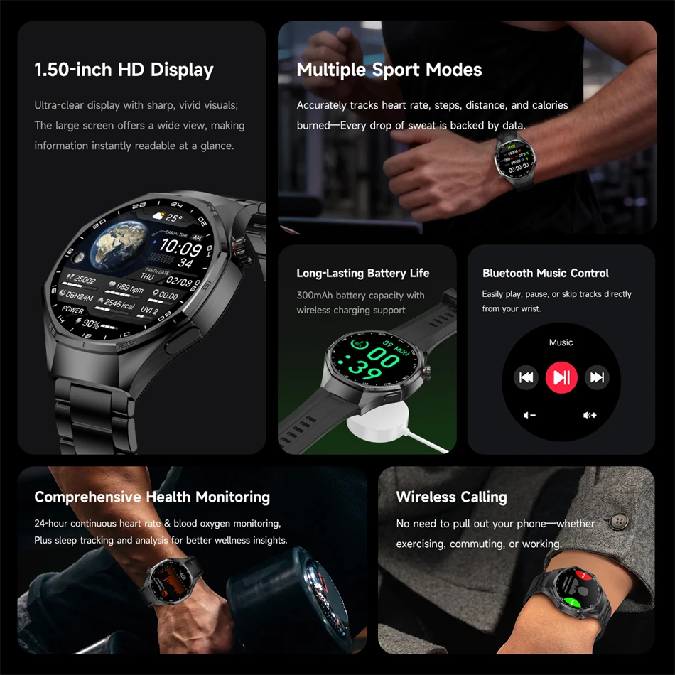 Corpo in metallo, resistente alla polvere, alle cadute, cinturino sostituibile, impermeabile IP67, display AMOLED full-touch ad alta definizione, batteria al cobalto puro ad alta tensione di grande capacità, GPS di posizionamento della traiettoria ad alta precisione, sensori multipli, modalità sportive multiple, monitoraggio della frequenza cardiaca, monitoraggio dell'ossigeno nel sangue, monitoraggio del sonno