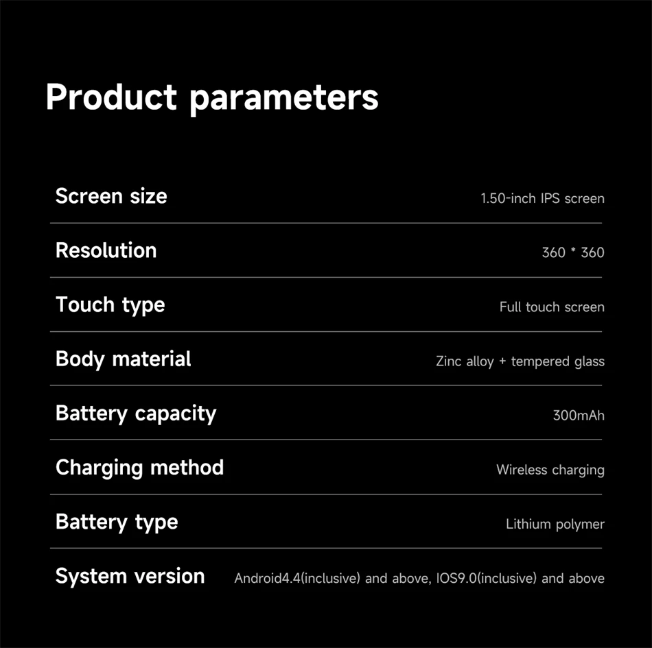 Funzioni di impostazione: isola intelligente, tempo di spegnimento dello schermo, regolazione della luminosità, impostazione della luminosità (puntatore dello schermo spento), personalizzazione dei pulsanti, alza la mano per illuminare lo schermo, intensità della vibrazione, modalità non disturbare, impostazione password, selezione lingua, modalità di risparmio energetico, impostazione di ora e data, connessione al telefono cellulare, chiamata Bluetooth, ripristino delle impostazioni di fabbrica, riavvio, spegnimento, circa