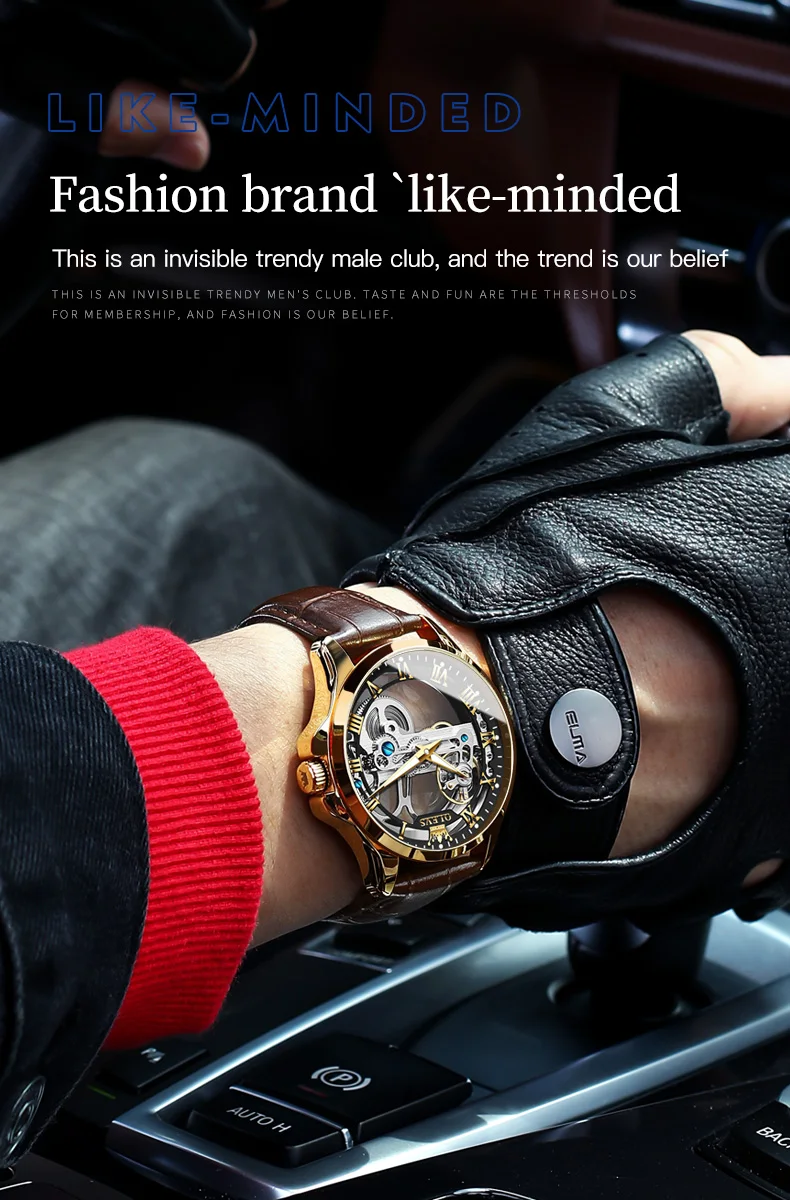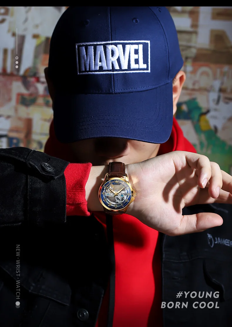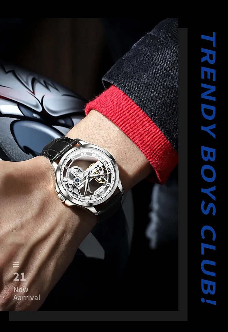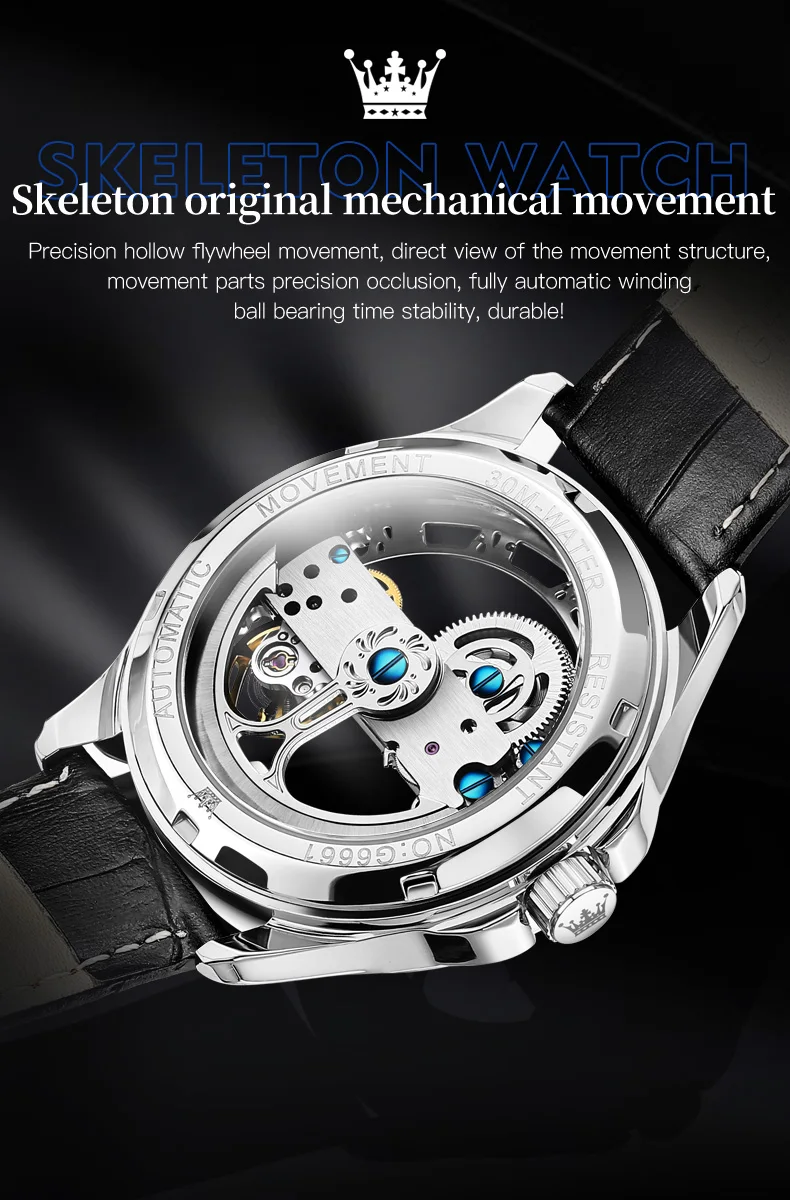 Orologio OLEVS Automatico Uomo – Scheletro Lusso con Cinturino in Pelle e Scatola Regalo